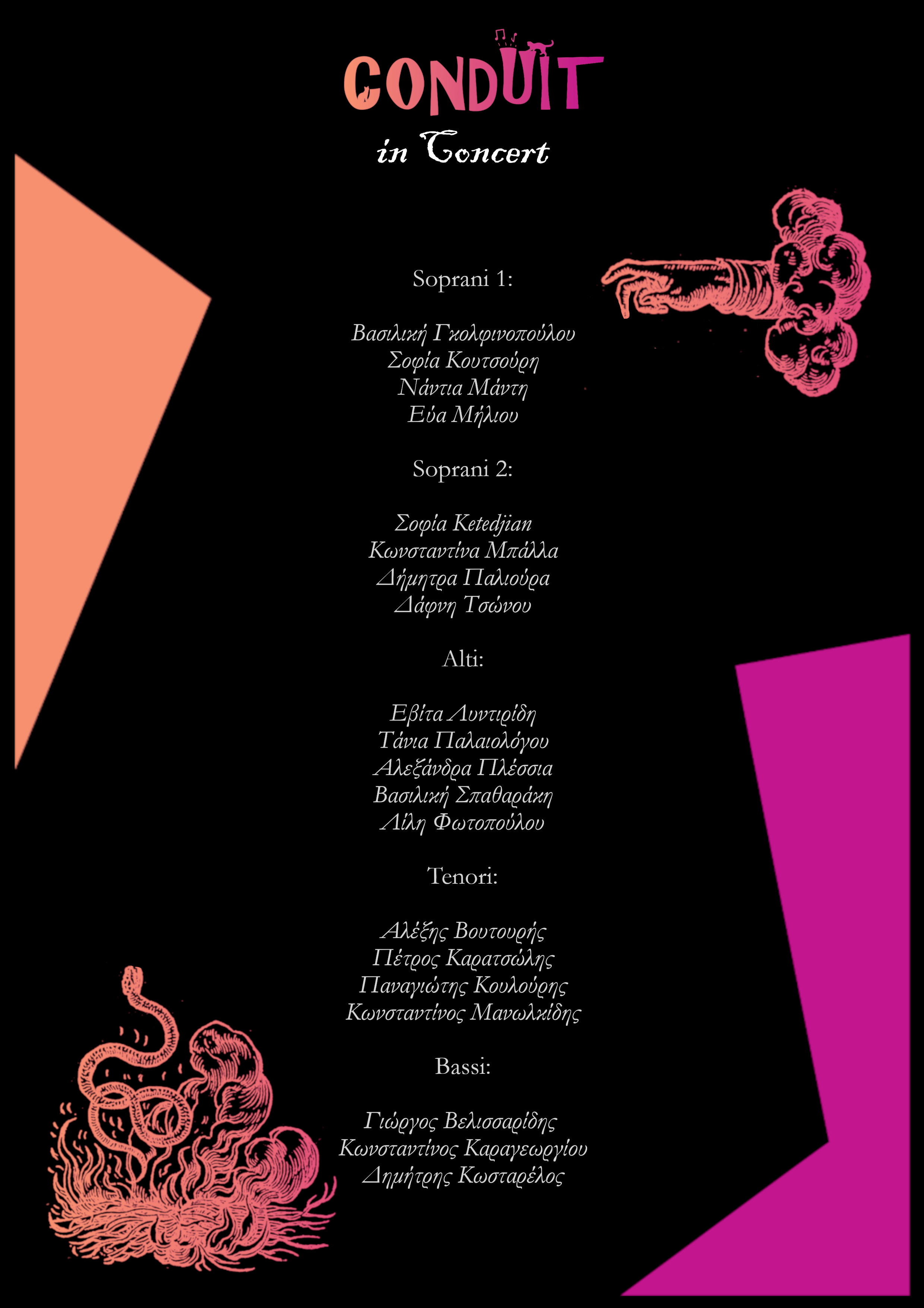- Φωνητικό Σύνολο: Σοφία Κετεντζιάν, Κωνσταντίνα Μπάλλα, Αλεξάνδρα Πλέσσια, Τάνια Παλαιολόγου, Πέτρος Καρατσώλης, Κωνσταντίνος Μανωλκίδης, Γιώργος Βελισσαρ΄ίδης, Κωνσταντίνος Καραγεωργίου